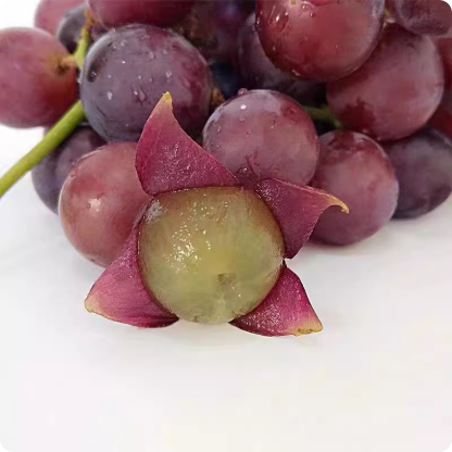 ໝາກອະງຸ່ນທີ່ປູກຢ່າງລະມັດລະວັງ, ທຸກໆແກ່ນໃຫຍ່ແລະເຕັມ, ສີມ່ວງເຂັ້ມເຖິງດຳ, ຫຸ້ມດ້ວຍແປບຂາວຫນາ, ເຊິ່ງເປັນສັນຍານຂອງຄວາມສົດໃໝ່. ເນື້ອແຂງແຫນ້ນເຕັ່ງນ້ຳ, ຫວານປົນສົ້ມນ້ອຍ, ລົດຊາດສົມດຸນ, ມີລົດຊາດທີ່ດີ. ໜັງງ່າຍຕໍ່ການປອກ, ສະດວກໃນການກິນ. ອຸດົມໄປດ້ວຍ anthocyanins ແລະ glucose, ສາມາດຊ່ວຍຟື້ນຟູພະລັງງານໄດ້ຢ່າງວ່ອງໄວ, ເປັນໝາກໄມ້ປະຈຳວັນທີ່ມີສຸຂະພາບແລະແຊບ.